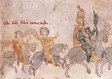 Tancred (Italian: Tancredi; 1138 – 20 February 1194) was King of Sicily from 1189 to 1194. He was born in Lecce an illegitimate son of Roger III, Duke of Apulia (the eldest son of King Roger II) by his mistress Emma, a daughter of Achard II, Count of Lecce. He inherited the title "Count of Lecce" from his grandfather and is consequently often referred to as Tancred of Lecce. Due to his short stature and unhandsome visage, he was mocked by his critics as "The Monkey King".[1]
