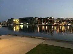 Tangen Park is a grass park in the tip of Tangen, there is a pedestrian road around the area and a playground in the middle, the area is also located with public bathrooms and bench down to the shore for fishing etc.