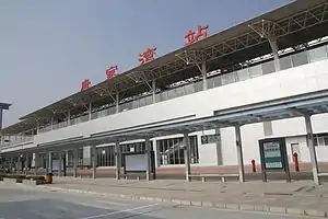Tangjiawan Station (Chinese: 唐家湾站; pinyin: Tángjiāwān Zhàn), formerly Jintang Station (Chinese: 金唐站) during planning, is an elevated station of the Guangzhou–Zhuhai intercity railway (Guangzhu ICR). It is located in Tangjia Town, Xiangzhou, Zhuhai, Guangdong, China, and is located directly in front of the Zhuhai College of the Beijing Institute of Technology and near the Zhuhai International Circuit.
