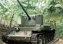 At first, the Centurion was not considered capable of dealing with all Soviet tanks and it was joined by a traditional heavy tank design, the Conqueror. This design was almost as heavy as the German WWII King Tiger and was tasked with dealing with the heavy Soviet designs like the Joseph Stalin IS-3.[22] They were issued at nine for each regiment in Germany; usually grouped in three tank troops. It used the American 120 mm gun and was expected to give long range firepower and support to the Centurion tanks that made up the bulk of British tank force. To provide even more firepower for the British Army of the Rhine tank units, Charioteer, a variant of the Cromwell tank with a 20 pounder gun, was deployed; it was a defensive weapon, in practice more a self-propelled anti-tank gun.