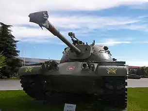 While a Panzer IV's (Ausf. G) 75-millimeter (3 in) L/43 tank gun could penetrate 77 millimeters (3 in) of steel armor at 1,800 meters (2,000 yd) (using the Panzergranate 39),[157] the M47 (using the M348 HEAT warhead) could penetrate 190 millimeters (7.5 in) from its 90-millimeter (3.5 in) tank gun. Furthermore, the M47's armor was 110 millimeters (4.3 in) thick on the glacis plate, and 178 millimeters (7 in) thick on the turret front.[158] Spain also received a number of M41 Walker Bulldog light tanks.[159] These were organized into the Villaviciosa Light Armored Cavalry Regiment, while four were also organized into the Alcázar de Toledo Armored Infantry Regiment as reconnaissance tanks.[160]