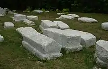 Mountainous Illyrian tribe of Autariatae inhabited the area during the Bronze Age. Though it is often mentioned that tara means "star" in Sanskrit, name of the mountain is derived from the name of the tribe. On the locality of "Borovo Brdo" near Kaluđerske Bare, a Slavic pottery from the 6th and 7th century was found. The medieval necropolis of Mramorje is located near the village of Perućac. As one of the most important stećci complex in Serbia, it has been protected by the state as a Cultural Monument of Exceptional Importance. Another such necropolis is near the village of Rastište.[11][19] Mramorje is located near the Perućac lake. The necropolis originates rom the 1300s and the 1400s, and currently has 88 visible tombstones. All of them are plain, without ornaments, except for one which is decorated with a circle-shaped ornament. All stones are made of one white limestone block which weight 3 tons and more. They have been called mramorovi ("marble [blocks]"), hence the name of the locality. They are made in different shapes: slab, box, gable roof, slightly dressed rectangular stones, etc. Small scale exploration of the area was conducted in 2010 and the stone monuments were conserved in 2011. Rastište is 7 km (4.3 mi) from Perućac, in the valley of the Derventa river. It consists of two cemeteries, separated by 500 m (1,600 ft), north of the village church. There are 35 tombstones at the Gajevi locality, and 33 at Uroševine. These stećci are decorated with carvings of bow and arrow, swords, etc. It is in the vicinity of the quarry Vagan, the source of the stone for the stećci.[20]