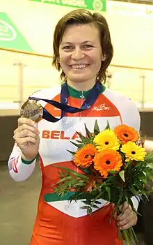 Tatsiana Valerevna Sharakova (Belarusian: Таццяна Валер'еўна Шаракова; born 31 July 1984) is a Belarusian professional racing cyclist, who currently rides for UCI Women's Continental Team Minsk Cycling Club.[3] She competed at the 2012 Summer Olympics on the track in the women's team pursuit for the national team.