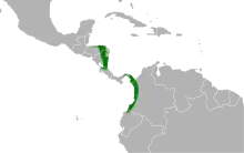The tawny-faced quail has a discontinuous range. The nominate subspecies is found in Costa Rica and Panama. R. c. pudibundus is found in northeastern Honduras and eastern Nicaragua. R. c. australis is found on the Pacific coasts of Colombia and far northern Ecuador. The species inhabits lowland tropical forest up to about 1,450 m (4,760 ft) of elevation. It is primarily terrestrial but roosts in trees and bushes near the ground.[3]