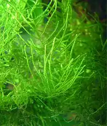 Taxiphyllum barbieri, known as Java moss or Bogor moss, is a moss belonging to the family Hypnaceae.[1][2] Native to southeast Asia, it is commonly used in freshwater aquariums. It attaches to rocks, roots, and driftwood. In the wild, it grows in humid riparian areas.[3]