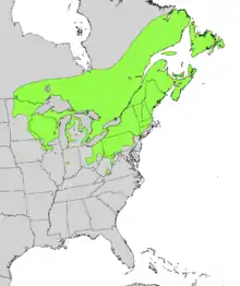 Most of its range is well north of the Ohio River. It is, however, found as a rare ice age relict in some coves of the Appalachian Mountains. The southernmost colonies are known from Ashe and Watauga Counties in North Carolina.[4]