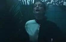 The video begins with shots of the ocean; The Daily Beast's editor Marlow Stern drew comparisons between the shots to Paul Thomas Anderson's drama film The Master (2012).[44] The scene revealed an unseen city with ruins of factories on an island and full of teens "without any parental guidance".[45][46] On Lorde's Facebook account, she further explained that world was "so different to anything anyone had ever seen, a dark world full of tropical plants and ruins and sweat".[43] Inside the ruins, she is seen as the "self-anointed" queen of the city's citizens in a "blue, foliage-filled universe".[44][45] Stern compared her image to that of The Hunger Games' fictional character Katniss Everdeen.[44] A young boy is transported to the island;[46] following his arrival, he must joust on a motorbike to become a part of Lorde's "team".[41][47] He loses;[47] Lorde commented that "sometimes the person who loses is stronger".[43]