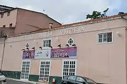 Dedicated primarily to revues, which are known in Portugal as Teatro de Revista, the Teatro Maria Vitória opened on 1 July 1922 in the Parque Mayer (Mayer Park) district of Lisbon, which was at one time known as the “Broadway” of Lisbon. The theatre was named in honour of a fado singer, Maria Vitória, who had died at a young age in 1915. It started life as a wooden building. The playwrights, Ernesto Rodrigues, Félix Bermudes and João Bastos, played an important role in the theatre's early performances, working under the pseudonym of the “Troianos”. It was the first of the four theatres in the area, the others being the Teatro Variedades and the Teatro Capitólio, which both still exist, and the Teatro ABC, which was demolished in 2015.[1] Teatro Maria Vitória suffered a fire on 10 May 1986, which destroyed the entire building and contents, forcing the performing company to temporarily transfer to the Teatro Maria Matos.[2][3]