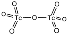 Technetium(VII) oxide is the chemical compound with the formula Tc2O7. This yellow volatile solid is a rare example of a molecular binary metal oxide, the other examples being RuO4, OsO4, and the unstable Mn2O7. It adopts a centrosymmetric corner-shared bi-tetrahedral structure in which the terminal and bridging TcO bonds are 167pm and 184 pm respectively and the TcOTc angle is 180°.[2]