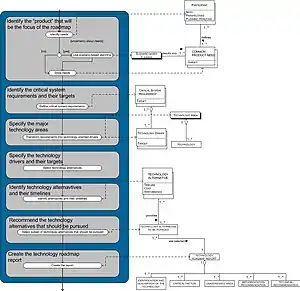 A technology roadmap is a flexible planning technique to support strategic and long-range planning, by matching short-term and long-term goals with specific technology solutions.[1][2] It is a plan that applies to a new product or process and may include using technology forecasting or technology scouting to identify suitable emerging technologies.[3] It is a known technique to help manage the fuzzy front-end of innovation.[4] It is also expected that roadmapping techniques may help companies to survive in turbulent environments[1] and help them to plan in a more holistic way to include non-financial goals and drive towards a more sustainable development.[5] Here roadmaps can be combined with other corporate foresight methods to facilitate systemic change.[6]