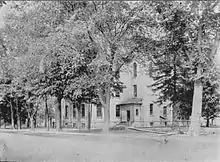 The year 1866 saw the first graduating class of Tecumseh with a total of eight students receiving diplomas.[2] Typical of most schools of the era, Tecumseh High School operated more as a college rather than a high school of today. In 1905, students were subject to examination and classification for admission which limited the class size significantly. Students deemed eligible for admission were then subject to tuition: $16.67 to the high school, $13.33 to the grammar department, $11.67 to the primary department. These three departments housed the three courses of study: Latin, Science, and English. A student with a diploma in one of these areas was given admission to any college in the state, without examination.[3] It wasn't until 1919 that the school took the form of a traditional high school.