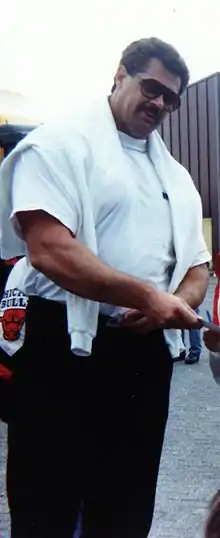 Ted van der Parre (born 21 September 1955) is a former strongman from the Netherlands, who won the World's Strongest Man contest in 1992 and was 4th in 1991.[1] He also participated in 1994 when he finished 8th, having to drop out after the second event due to a calf injury.[2] At 2.13 m (7 ft 0 in) and 160 kilograms (350 lb), Van der Parre was the tallest man ever to compete in the World's Strongest Man contest, and also has the lowest WSM BMI of 35. He also won the Netherlands Strongest Man contest in 1991, 1992, and 1994.[2]