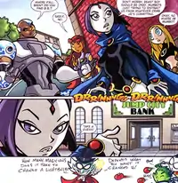 Most issues were largely self-contained stories, and included a number of characters outside the core group of Robin, Raven, Starfire, Beast Boy, and Cyborg. Given that character licensing restrictions in DC comics are different from those on the show, J. Torres was able to include characters such as Wonder Girl who were not licensed for the TV show.[1] Each issue contained riddles, sight gags, and jokes played out by super deformed characters outside the page margins.