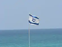 The Flag of Israel has two blue stripes and a blue Star of David against a white background. Because of its association with the State of Israel, blue became very popular in contemporary Jewish design.[7] Modern tallitot, especially those used by Religious Zionist Jews, often have blue stripes on a white background instead of black stripes common in Haredi communities.