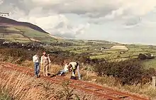 BBC TV signals from Sandale transmitter in Cumbria could be received in northern parts of the island since that transmitter started broadcasting in 1956, and signals from the BBC TV Llandonna transmitter in North Wales could be received in southern parts of the island since 1958.[1][2][3]