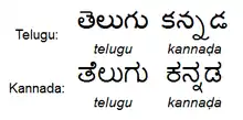 The following sections visualize the difference between modern-day Kannada and Telugu styles.