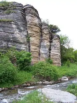 The Temštica, known as the Topli Do river (Toplodolska reka, Топлодолска река) in the northern part, originates from five streams from the Stara Planina mountain on the Serbian–Bulgarian border. Three major streams spring out from several peaks of Stara Planina: Midžor/Midzhur (Миџор/Миджур), Vražija Glava/Vrazha glava (Вражија Глава/Вража глава), Bratkova Strana (Браткова Страна) and Gola Glava (Гола Глава). They all join together near the village of Topli Dol, which gives the alternative name to the river. Temštica carved a canyon, popularly nicknamed "Little Colorado". The river continues to the northwest and receives the Visočica from the left.