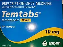 Temazepam (sold under the brand names Restoril among others) is a medication of the benzodiazepine class used to treat insomnia.[3] Such use should generally be for less than ten days.[3] It is taken by mouth.[3] Effects generally begin within an hour and last for up to eight hours.[2]