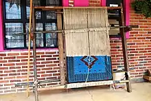 The municipality is also known for the making is Persian-style handknotted rugs.[5] The making of these rugs was begun in 1968 with the aim of creating jobs in the region. It was initially sponsored by the Bank of Mexico; later the project was funded by the State of Mexico.[3] This project was later abandoned due to poor management, but families here continued to make the rugs on their own. In 1999, a new organization, Sociedad Cooperativa de Tapetes Anudados a Mano Temoaya (http://tapetestemoaya.com/) took over but remained independent of the government.[3] Although most rugs are made in a community called San Pedro Arriba (5 km from the seat), the cooperative's store, Centro Artesanal “Tapetes Mexicanos” is located in San Pedro Abajo.[2][3]
