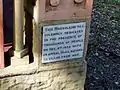 The interior contains a sarcophagus surmounted by the carved figure of a dog. Both the interior and exterior have numerous leaded memorial and pacifist inscriptions.[2]