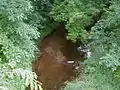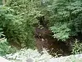 Ten Mile Run crossing Route 27; viewed from a nearby pedestrian bridge