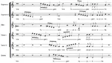 The texts of the Responsories for Holy Week are related to Jesus's Passion and are sung in between the lessons at Tenebrae. Gesualdo's settings are stylistically madrigali spirituali - madrigals on sacred texts. As in Gesualdo's later books of madrigals, he uses particularly sharp dissonance and shocking chromatic juxtapositions, especially in the parts highlighting text passages having to do with Christ's suffering, or the guilt of St. Peter in having betrayed Jesus.