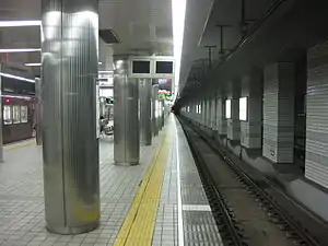 ![]() Tengachaya Station subway island platform. A train can be seen on the far left, where the side platform is. | |