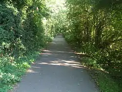 There is no trace of Tenterden St. Michael's today; its site is now a footpath and cycleway.[10] To the north beyond the site of the level crossing over Grange Road, Orchard Road has been built along the right-of-way[11] and St. Michael's tunnel remains beneath Shoreham Lane at grid reference TQ883354.[12]