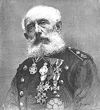 Luis de Mas married Elvira Nadal Valls (1833-1912);[11] the couple lived at the Manso Escorial estate near Vich.[12] They had at least 8 children, born between 1853 and the 1870s; Teodoro was the third in sequence, but the first son. Nothing is known of his early education. As a 14-year-old he escaped from home to join the legitimists during the Third Carlist War; twice rejected due to his age, he was eventually admitted to Real Cuerpo de Ingenieros; the structure was commanded by his own father.[13] Already as an adolescent nominated alférez following the battle of Ripoll,[14] he took part in various skirmishes in Catalonia[15] until transferred to the Northern Front; he entered personal guard of the claimant and after the 1875 battle of Lumbier he was awarded Cruz del Mérito Militar. He was then sent on an unspecified mission to France, but was detained when trying to cross back to Spain and interned in Montauban until the end of hostilities.[16]