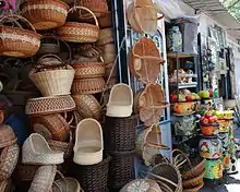 Another attraction of the town is shopping, especially for handcrafts and folk art. The two most traditional crafts of the area are baskets and furniture made from wood, wicker, rattan and other materials. However, crafts from many parts of Mexico are available for sale as well. The main markets, which are the municipal market and the handcrafts markets are located on Ezequiel Montes Street near Salvador Carrizal.[5][7] In addition to these markets there are a number of street vendors who sell from stalls or by walking around the streets. One common type of merchandise, especially in the main square are sweet breads, dried fruit, fruits in syrup and other sweets.[3] One unique sweet of the town is crystallized nopal cactus.[4] Otomi women can be seen in the main plaza and other locations selling their crafts. Most of these vendors are from the neighboring municipality of Amealco. These crafts generally consist of embroidered napkins and other textiles, rag dolls, ceramics and baskets.[8]