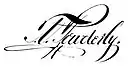 Powderly, a resident of the Petworth neighborhood in Washington, D.C., in the last years of his life, died at his home there on June 24, 1924.[17] He is buried at nearby Rock Creek Cemetery. A second autobiography by Powderly, The Path I Trod, was published posthumously in 1940. Powderly's papers are available for use at more than a dozen research libraries across the United States. He was survived by his second wife, Emma (Fickensher), who was his late wife's cousin and a former work associate, who he had married in 1919.[18]