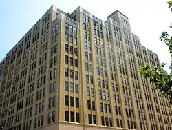 Terminal Commerce Building, also known as the North American Building, is a historic building complex located in the Callowhill neighborhood of Philadelphia, Pennsylvania. It was built between 1929 and 1931 by the Reading Company, and is a combined office, showroom, parking garage, warehouse and freight station totaling over 1.3 million square feet. It measures 528 feet by 225 feet. The front section houses offices, and is a 14-story, reinforced concrete, brick and terra cotta faced building in the Art Deco style. The front facade has a central tower with terra cotta ornamentation that houses water tanks. The rear warehouse section is 12-stories and is "H"-shaped.[2]