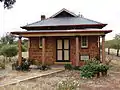 The town of Terowie was founded as a private venture around 1875 by John A. Mitchell (died ca. May 1879), who built a public house (highly profitable due to its proximity to the Inkermann mine[11]) on the main road, and sections were taken up by a blacksmith, a medical practitioner (a Dr. Carter[12]), a store and others. This was in flagrant contravention of the terms of Mitchell's lease, but received an imprimatur when he facilitated building of a Wesleyan chapel.[13] By the end of 1875 it consisted of seven houses in a row.[14] In 1877 an area of "wasteland" to the east across the road was nominated by the Government as the site of a town named "Shebbear".[5][15] (perhaps named after Shebbear, Devon). This was objected to by interests in Terowie[16] and nearby Yarcowie, which was anxious for any development to be there.[17] Eventually lots were offered for sale at "Shebbear", but the name was scarcely used outside the context of proposed land sales, and all references to the future railway used "Terowie". By 1880 there were two stores, two butchers, a bakery, a saddlery, a bootmaker, three blacksmiths, the hotel (now run by Eglington) and another under construction, two chapels, an Institute (but as yet no Post Office or Police Station[18]) and the railway station.[19] The line south was completed on 11 October 1880.[20]