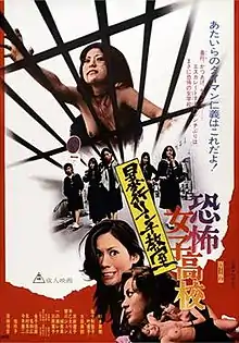 Terrifying Girls' High School: Lynch Law Classroom (恐怖女子高校 暴行リンチ教室, Kyōfu joshikōkō: bōkō rinchi kyōshitsu) is a 1973 Japanese film in the sukeban (delinquent girl) subgenre of Toei's "Pinky violence" style of Pink film. The second in the Terrifying Girls' High School series, this was the last entry in the series directed by Norifumi Suzuki and to pair Reiko Ike and Miki Sugimoto. It is notable as the first film to depict an omorashi fetish scene to a theatrical audience, in which a girl is forced to drink a lot of water and then is denied permission to go to the toilet, forcing her to wet her skirt in class.