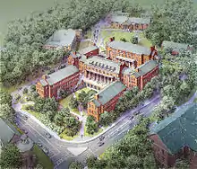 Brooks Hall, designed by prominent Atlanta architect Neel Reid, was built in 1928. It was known as the Commerce-Journalism Building before being renamed in 1974 for Robert Preston Brooks, the college's first dean. Brooks Hall houses the dean's office, a 300-seat auditorium and about 260 faculty and staff offices. The original structure was seriously damaged by fire in 1995 and restored a year later.[1]