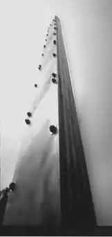 Tery Fugate-Wilcox (born 1944) (also known as Terry Fugate-Wilcox before the 1980s when he "donated a surplus r to charity"), is a minimalist and natural-process postminimalist (Actual Art)-ist painter and sculptor best known for three monumental art works in New York City and surrounding region: the LMCC-sponsored Holland Tunnel Wall (dismantled circa 1989), the 3-storey Self-Watering Tetrahedrons fountain located in Prudential's Gateway 4 lobby until 1998, and the permanently installed 36-foot-tall 3000 A.D. Diffusion Piece in J. Hood Wright Park overlooking the George Washington Bridge. The latter is the subject of a New York City official historical sign.[1] The artist is an NEA-laureate with creations in the collections of the Smithsonian Institution, the National Gallery of Australia, NYC Parks, and several museums. His art at times led to tangles with the House Un-American Activities Committee, the New York City Department of Buildings, and magazine "Art in America". He was co-organizer of the Fulcrum Gallery (AKA Fvlcrvm Gallery, AKA Shakespeare's Fvlcrvm) located in the basement of the SoHo Branch of the Guggenheim Museum until both sites closed in 2002 in part due to the economic effects arising from the September 11 attacks on SoHo and TriBeCa.