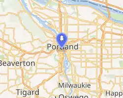 Located across from City Hall, the park is named after former Portland mayor Terry Schrunk and neighbors the Plaza Blocks consisting of Chapman Square and Lownsdale Square. The park is not a city park, but instead owned by the federal government. Schrunk Plaza is across Third Avenue from the Edith Green – Wendell Wyatt Federal Building, and the plaza covers an underground parking structure for that building.[1] That structure was the planned assassination site of Charles H. Turner in the failed plot by members of the Rajneeshees in 1985 to kill Turner, the U.S. Attorney for Oregon who worked in the building.[2] There are several Taihu stones in the plaza which is a gift from Portland's Chinese sister city, Suzhou in 1996.[3]
