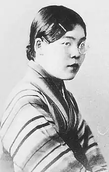 Teru Hasegawa was born Hasegawa Teruko (長谷川照子) in 1912 as the second of three children. In 1929 she enrolled at the Women's College of Education in Nara prefecture. She became acquainted to leftist literary circles, and Esperantist circles. She married Liu Ren, who was from Manchuria, in 1936.[2] In April 1937 she went to China. She joined the Chinese resistance to Japan, where she made broadcasts aimed at the Japanese Army.[3]
