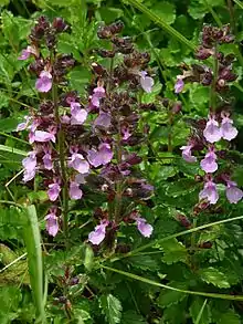 Teucrium chamaedrys, the wall germander,[1] is a species of ornamental plant native to Mediterranean region of Europe and North Africa, and to the Middle East as far east as Iran.[2][3][4][5] It was historically used as a medicinal herb for the treatment of gout and sometimes as a component of Venice treacle.