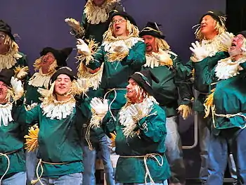 The July 2005 International Chorus contest in Salt Lake City was a new experiment. 12 wild card choruses competed against each other on Thursday of the convention week. From those 12, 6 were selected to compete in the international chorus finals on Saturday. The Texas Millionaires were among the only choruses competing who were on their first trip to International. They made the finals and the "scarecrows" competed on Saturday, finishing 17th.