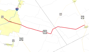 SH 53 was designated on August 21, 1923 as a route from Dickens to Brownfield, replacing a portion of SH 18.[2] This route was cancelled on March 19, 1930 when SH 24 extended west, replacing the route from Dickens to Lubbock, while the rest of the route was renumbered as part of SH 137.