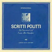 "The 'Sweetest Girl'" is a song written by Green Gartside. It was originally performed by Gartside's band Scritti Politti, and released in 1981 as a single. The single peaked at number 64 in the UK Singles Chart.[1] The keyboards are played by Robert Wyatt.[2]