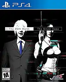 A version of The 25th Ward for the Nintendo DS was originally planned by Suda, to be released with the planned DS port of the original game.[19] The existence of The 25th Ward meant that no new content was created for the DS port of The Silver Case.[12] In a later interview, Suda referred to The 25th Ward as a "ghost" game due to its status as a mobile title that was no longer available for download.[7] The Silver Case was re-released as a high-definition remaster in 2016, with Suda commenting that it if sold well he would consider remaking The 25th Ward.[20] A remake was announced in July 2017.[21] Due to the game's age and initial platform, Suda decided upon a complete remake rather than a remaster.[7] A worldwide release for PlayStation 4 and Windows was announced on September 21, 2017 and subsequently released on March 15, 2018.[22] The PlayStation 4 version was packaged with its predecessor in Japan under the title The Silver Case 2425.[23] A port of The Silver Case 2425 for the Nintendo Switch was announced on November 7, 2020 for a Japanese release on February 18, 2021.[24] It was announced on March 4, 2021 that The Silver Case 2425 for the Nintendo Switch would be available on July 6, 2021 in North America and July 9, 2021 in Europe.[25]
