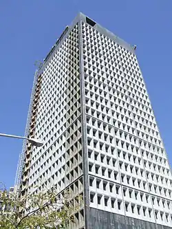 The 9 Cleveland is a residential and commercial complex located in Downtown Cleveland, Ohio, United States, at the corner of East Ninth Street and Euclid Avenue. It includes three buildings, the largest of which is a 29-story, 383 feet (117 m) tower commonly known by its previous name of Ameritrust Tower and formerly known as the Cleveland Trust Tower. The tower was completed in 1971 and is an example of brutalist architecture, the only high-rise building designed by Marcel Breuer and Hamilton Smith. The complex also includes the adjacent Cleveland Trust Company Building, completed in 1908, and the Swetland Building.