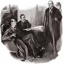 ![]() Mycroft Holmes visiting his brother, 1908 illustration by Arthur Twidle in The Strand Magazine | |