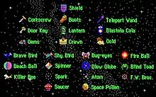 The games' enemies exhibit different behaviour, ranging from simply bouncing off the walls and pre-set paths to creatures who seek the player out and turn to follow Comic as he passes by. Enemies are generally restricted to their own area (Space Pollen is only on the moon, for example), and a few move faster than the others. All enemies have the same gameplay property which is that if they touch Comic, the enemy is destroyed and Comic suffers two points of shield damage. Once he has picked up a Blastola Cola (the first one is found at the very start of the game), Comic may shoot at enemies. If he hits an enemy, it is destroyed and points are scored.