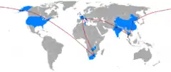 In December 2000, CBS announced that it was set to produce a new reality show entitled CBS Summer Global Adventure Series, which would feature eight teams of two traveling to eleven international locations to win US$1 million.[3] Location scouting for the racecourse took place in January 2001.[1] The first season of The Amazing Race traveled 35,000 miles (56,000 km) in 39 days, spanning four continents and nine different countries.[lower-alpha 1] The season was hit with multiple filming delays, including an airport strike in Rome and a sandstorm in Tunisia, the latter of which forced teams to begin Leg 6 in Gabès, rather than the original Saharan desert Pit Stop. The top of the World Trade Center was considered as the finish location for the season but was changed to Flushing Meadows Park after production was unable to secure needed permits.[1]