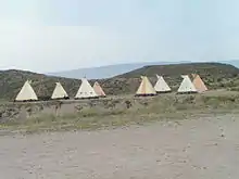This leg's second Detour was a choice between Pioneer Spirit or Native Tradition. In Pioneer Spirit, teams had to attach four wheels to a covered wagon, hook up a team of horses, and drive along a quarter-mile (400 m) course. In Native Tradition, teams had to use traditional materials and tools to build a teepee.