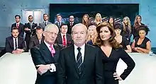 ![]() Promo group shot of Alan Sugar, Nick Hewer and Karren Brady standing before the candidates for series 9 | |