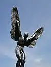 It is an athletic male nude with his feet placed shoulder width apart, knees slightly bent and arms outstretched supporting a pair of wings.[5] The blade/knife; dirk or possible dagger/stiletto the figure has in his sheath is a recognized symbol of masculinity.[6][7]